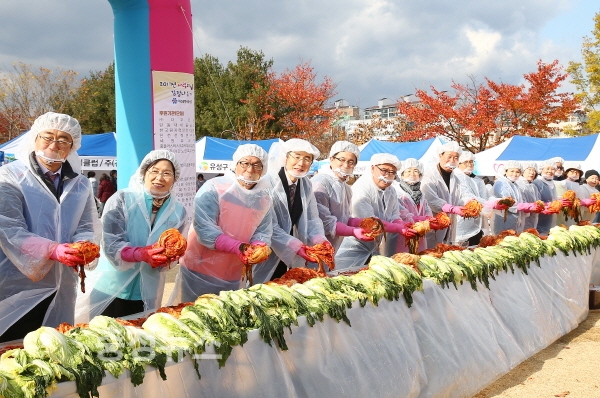 대전 유성구(구청장 허태정)는 15일 유림공원에서 지역사회보장협의체, 행복네트워크 등이 공동주관하는 ‘2017 사랑의 김장 나누기 행사’를 가졌다고 밝혔다.