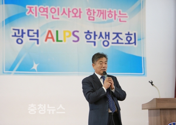 광덕초등학교 전교생 대상 지역인사 초청 특별 강연 나서