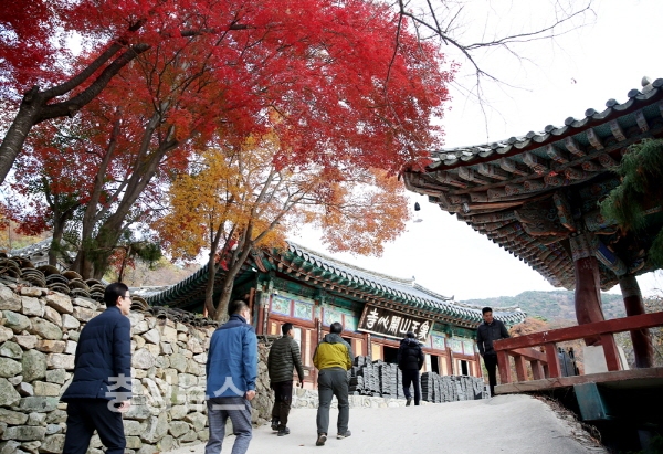 충남 서산시 운산면 신창리의 상왕산에 위치한 개심사(開心寺)에서 가을 끝자락의 정취를 즐기려는 관광객들의 발길이 이어지고 있다.