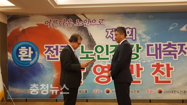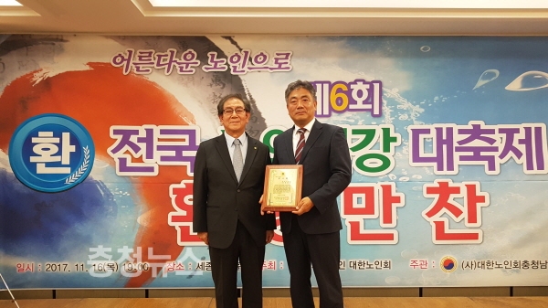 천안시의회 전종한 의장은 16일 세종웨딩홀에서 열린 제6회 전국 노인건강대축제 환영 만찬 행사에서 평소 노인 권익신장과 복지증진에 기여한 공로를 인정받아 사단법인 대한노인회(회장 이중근)로부터 감사패를 받았다.