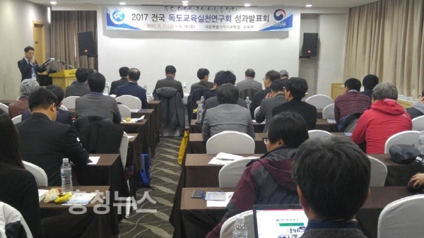 세종시교육청(교육감 최교진)은 17일부터 18일까지 이틀간 대전 인터시티호텔에서 전국 25개 독도교육실천연구회 소속 회원 및 교육부, 시·도 교육청 관계자 100여 명이 참석한 가운데 ‘2017 전국독도교육실천연구회 성과발표회’를 개최했다.