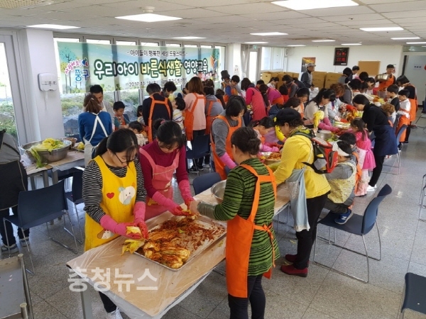 평소 편식이 심한 아동에게 고른 영양소가 담긴 음식물 섭취․부모에겐 바른 식생활의 중요성을 인식시키고, 교육 후 우리농산물 먹거리로 직접 김치를 담가 시식해보는 시간을 가졌다.