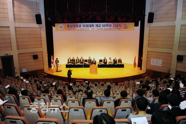충남대 의과대학은 지난 18일 정심화국제문화회관 백마홀에서 오덕성 총장과 고현송 학장, 오명주 의과대학동창회장, 지역인사, 동문, 교수, 재학생, 학부모 등이 참석해 의과대학 개교 50주년 기념식 행사를 개최했다.