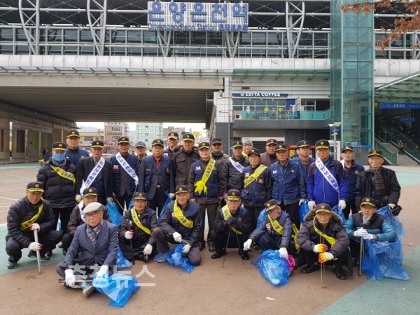 이날 무공수훈자회 아산시지회 회원 30여명은 추운 날씨 속에서도 온양온천역의 낙엽 및 쓰레기 등을 청소하며 온양온천역의 쾌적한 환경 조성을 위해 앞장섰다.