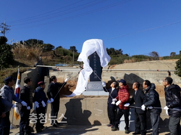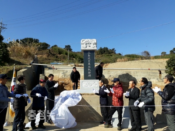 충남 보령시는 21일 오천면 녹도에서 정원춘 부시장과, 임창순 보령문화연구회장, 김성룡 녹도리 이장 등 지역주민과 관계자 50여 명이 참석한 가운데 항일의병 전적비 제막식을 가졌다.