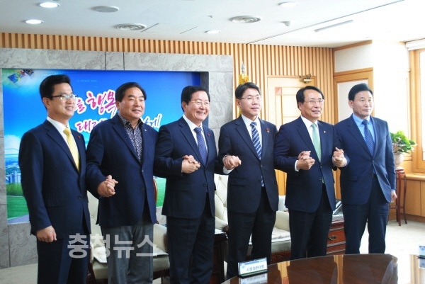 최근 권한대행 체제로 들어섬에 따라 주요 현안들이 차질을 빚지 않을까 우려를 감안해 이날 참석자들은 ‘옛 충남도청사 부지매입’등 국비 확보가 필요한 7건의 상생사업에 대해 토의하고 힘을 모아 추진하기로 했다.