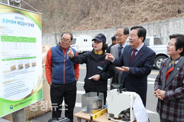장종태 서구청장은 매입현장을 방문해 수매등급과정을 점검하고, 한 해 동안 땀 흘려 고생한 농업인들을 격려했다.
