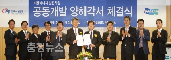 한국서부발전(사장직무대행 정영철)은 22일 두산중공업 서울사무소(서울 서초구 소재)에서 두산중공업과 ‘재생에너지 발전사업 공동개발’을 위한 양해각서를 체결했다.