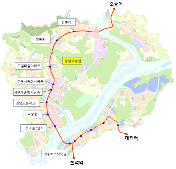 아울러, ‘세종 충남대병원’ 인근에 파크골프장, 풋살구장, 테니스장 등 특화 체육시설이 조성된 ‘오가낭뜰 근린공원’도 비알티(BRT)를 이용하여 쉽게 접근할 수 있게 된다.