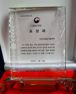 ‘2017년 농촌진흥기관 농업기계 교육사업 종합평가회’에서 우수기관 표창
