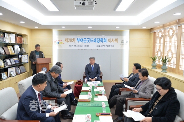 (재)부여군굿뜨래장학회는 23일 군청 브리핑실에서 이용우 이사장을 비롯한 장학회 이사, 감사 등이 참석해 제28차 부여군굿뜨래장학회 이사회를 개최했다.