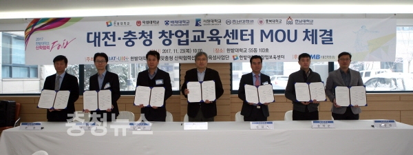 이번 협약은 ‘2017 한밭대학교 산학협력 페어’를 계기로 청년창업 활성화를 도모할 목적으로 한밭대, 목원대, 배재대, 서원대, 충남대, 충북대, 한남대 등 7개 대학의 창업교육센터가 협력네트워크를 구축하고자 마련됐다.