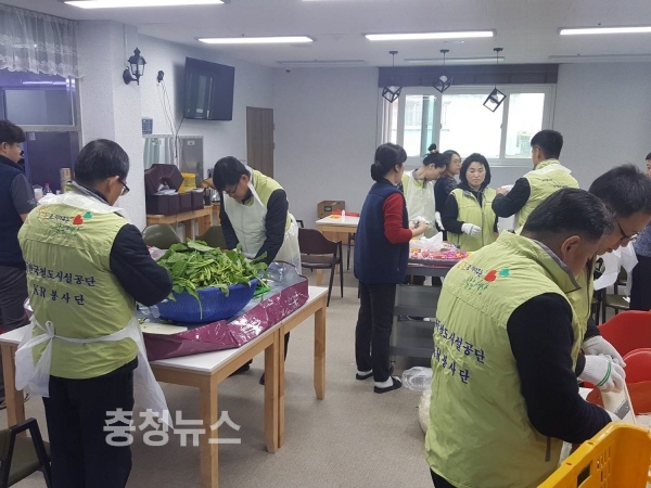 한국철도시설공단 시설장비사무소(소장 권영삼)는 지난 23일 중증장애인시설인 청목아카데미(충북 청주시 흥덕구 옥산면 소재)에 임직원 15명이 방문해 함께 김장을 담그고 시설에 필요한 TV와 생필품을 전달했다고 밝혔다.