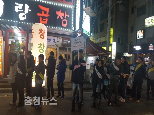 도교육청은 지난 23일 오후 7시부터 14개 시군별로 학생들이 많이 몰리는 중심가에서 교육지원청 주관으로 경찰서, 인근학교 교사 및 학생생활 지도상임위원, 유관기관이 합동 캠페인을 실시했다.