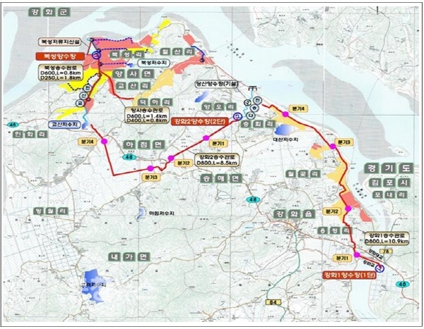 이번 강화지구 다목적농촌용수개발사업은 2020년까지 강화군 4개면과 김포시 포내리 일원에 저류지 1개소, 양수장 3개소, 송수관리 24.2km를 연견하게 된다. 이 사업을 통해 총 62.5만㎥의 수자원 확보로 인근 농경지 680ha에 공급하게 된다.