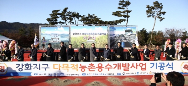 한국농어촌공사(사장 정승)는 24일 인천 강화군 하점면에서 안상수 국회의원, 농림축산식품부 김종훈 차관보, 조동암 인천광역시 부시장, 이상복 강화군수 등 관계자와 지역주민 500여명이 참석한 가운데 강화지구 다목적농촌용수개발사업 기공식을 개최했다고 밝혔다.
