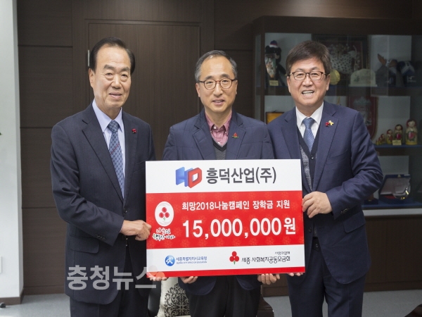 세종시 연동면에 위치한 ㈜흥덕산업은 보도 블록 전문 생산업체로, 세종시교육청에 매년 1천 5백만원을 기탁하고 있으며 평소에도 주변 마을에 다양한 지원을 통해 나눔을 실천하고 있다.
