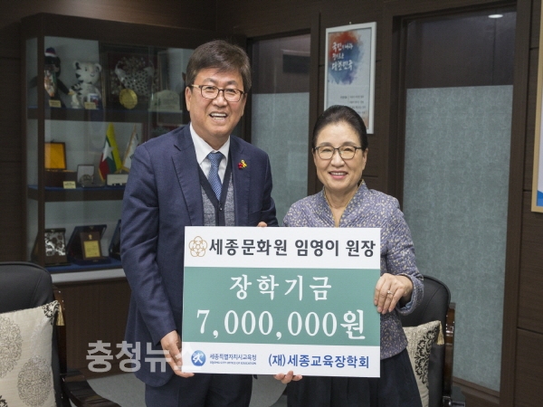 세종문화원 임직원 일동은 “장학기금이 실질적으로 도움이 필요한 학생과 바른 인성을 갖춘 학생들에게 보탬이 되었으면 좋겠다”고 말했다.