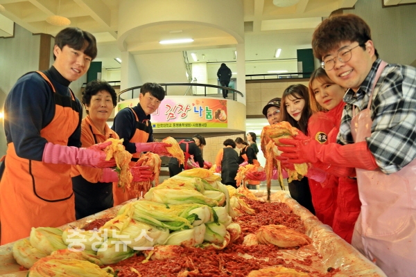 김장 봉사에는 단국대 재학생과 총학생회, 교직원 60여 명이 참여해 직접 김치를 담그며 이웃사랑을 실천했다.