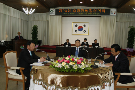 대전,충북,충남 충청권 시・도지사는 2.19(화), 16:00 충북도청 대회의실에서 당선인의 공약사업 중 국제과학비즈 니스벨트 조성사업의 발표를 촉구하기 위해 충청권행정협의회를 개최하였다.