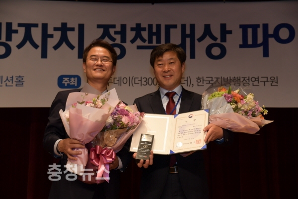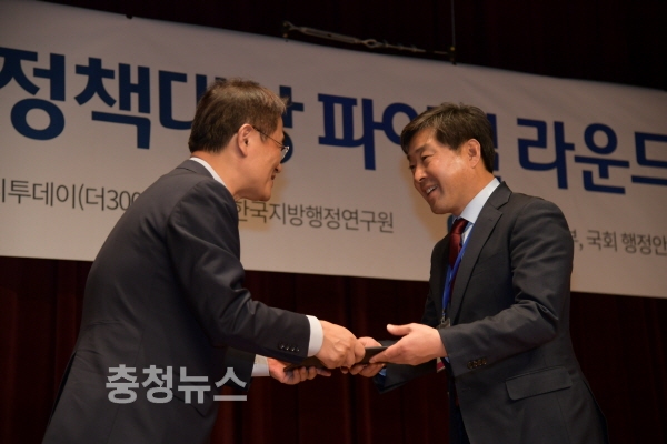 황명선 논산시장이 제2회 대한민국 지방자치 정책대상에서 대상을 수상하고 있다