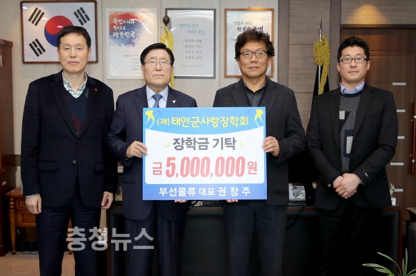 부선물류는 지난 6월에도 (재)태안군사랑장학회에 장학금 500만 원을 기탁하는 등 지역사랑의 마음을 꾸준히 전하고 있다.