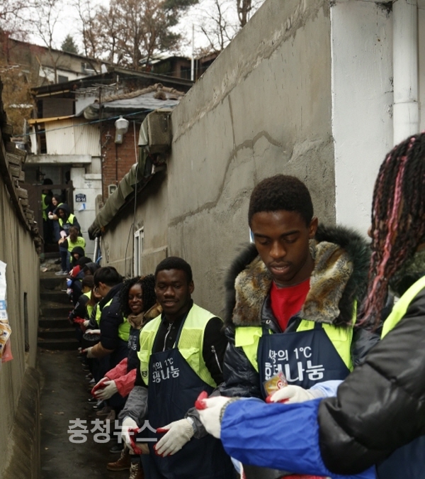 봉사에는 선문학원 교직원 80여명과 선문대학교 유학생 40여명을 비롯한 연탄을 처음 보는 아프리카, 남미 유학생들도 자원봉사에 참여했다.