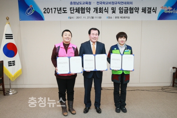 충남교육청은 27일 본청 제3회의실에서 전국학교비정규직연대회의와 임금협약을 체결했다.