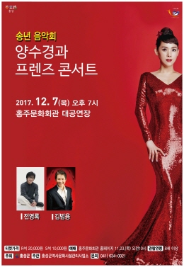 송년음악회 <양수경과 프렌즈콘서트>는 2017년을 마무리하는 송년시즌에 어울리는 공연으로 원조 디바로 불리는 양수경이 무대에 오르며 그녀의 히트곡을 대다수 작사, 작곡한 전영록, 김범용이 함께 해 7080 시절의 추억을 떠올리며 라이브로 들려주는 추억을 즐길 수 있는 무대가 될 것이다.
