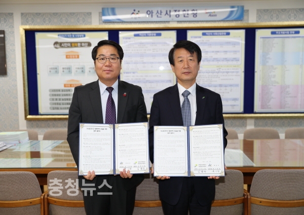업무협약체결 사진 (사진왼쪽부터) 오세현 아산시 부시장, 김양수 LH 대전충남지역본부장