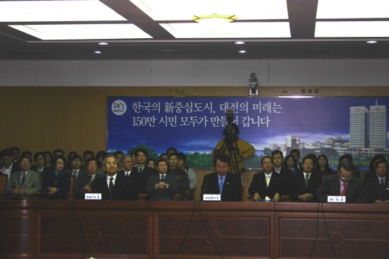 대전시의 과학기술도시의 위상을 제고, 동북아 R&D 허브도시로 도약을 위한 ‘U-Daejeon 비전선포식’이 9일 시청 대회의실에서 임주환 한국전자통신연구원(ETRI) 원장, 허운나 한국정보통신대학교(ICU), 남중수 KT 사장 등 100여명의 관계자가 참석한 가운데 열렸다.