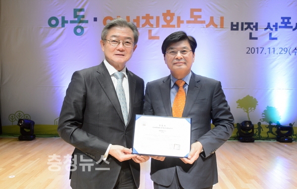 시는 지난해 12월 8일 여성가족부로부터 ‘여성친화도시’지정을 받은데 이어 올해 9월 19일에는 유니세프(UNICEF)로부터‘아동친화도시’인증을 받아 명실상부‘아동과 여성이 행복한 행복도시’라는 도시 이미지를 새롭게 구축했다.