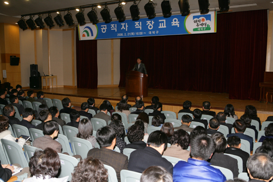 대덕구(구청장 정용기)에서는 지난 2월 21일 읍내동 문예회관에서 카네기연구소 박영찬 소장을 초빙하여 직원을 대상으로「공직자의 인간 관계와 리더쉽」이란 주제로 직장교육을 실시했다고 밝혔다.