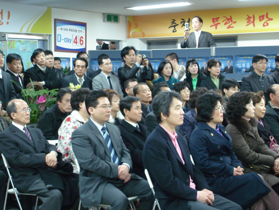 한편,이날 행사에는 심대평 대표 최고위원이 직접 참석해 축사에서 " 국민에게 희망의 정치 신뢰의 정치를 할 수 있게 김무용 후보의 필승을 기원한다'.며 '선진당의 새정치를 하려는데 동참한 것은 큰 힘이다" 라고 격찬, 김 후보를 유성지역 공천자로 이미 확정된 것이 아니냐는 해석이 나오고 있어 다른 5명의 예비후보들의 대응이 주목된다.