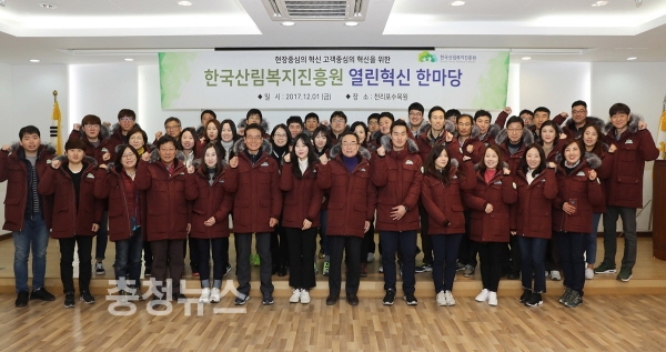 산림청 한국산림복지진흥원(원장 윤영균)은 1일 충남 태안군 소원면 천리포수목원에서 전 직원이 참여한 가운데 정부의 국정철학을 공유․확산하고, 혁신 정책 기조에 부응하기 위해 열린 혁신 한마당을 개최했다고 밝혔다.