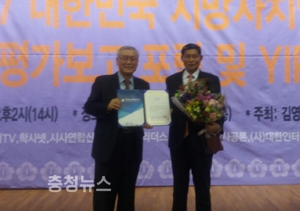 2017 지방자치평가 의정대상은 지방자치의회의 효율적 의정활동 및 지방자치제도 발전에 헌신해 온 지방의회 의원을 선정해 수여하는 상으로 여의도정책연구원이 주최했다.