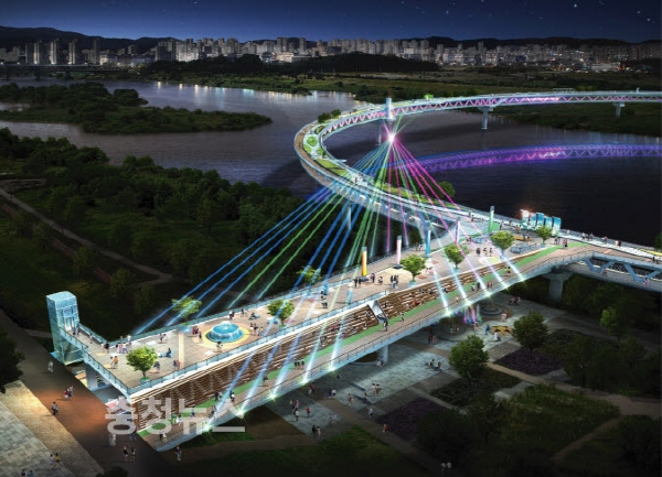 원형 모양의 국내 최장 보행 전용교로서 행정중심복합도시(이하 행복도시) 또 하나의 대표 공간(랜드마크)인 ‘금강보행교’의 기본설계안이 확정되어 본격적으로 추진될 전망이다.