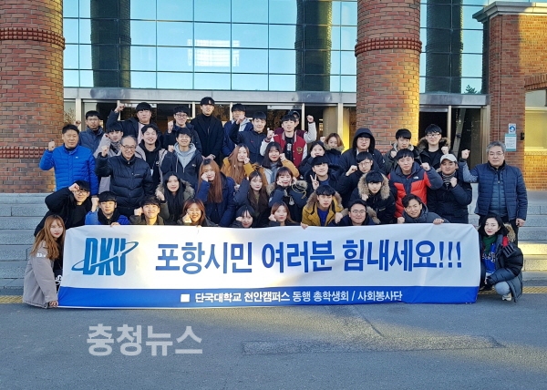 단국대학교(총장 장호성) 재학생과 교직원 35명으로 구성된 단국대 사회봉사단이 지난 1일 경북 포항시 흥해읍 한동대학교를 찾아 지진 피해 건물 잔해와 쓰레기 등을 수거해 하치장으로 옮기는 봉사활동을 펼쳤다고 3일 밝혔다.
