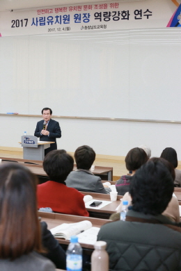충남도교육청(교육감 김지철)은 4일 아산 캠코인재개발원에서 도내 사립유치원장 136명을 대상으로 ‘사립유치원 원장 역량강화 연수’를 실시했다.