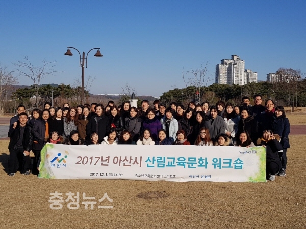 충남 아산시(시장 복기왕)는 지난 1일 관내 유치원, 어린이집 원장을 비롯한 교육 관계자 100여명을 대상으로 아산시 청소년문화센터 스마트홀 및 권곡문화공원에서 산림교육 활성화를 위한 워크숍을 개최했다.