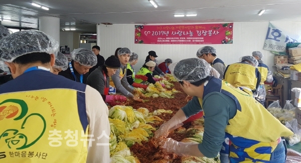 또 지난 3일에는 청라면(면장 김만수) 향천리에 위치한 무진사에서 독거노인 및 소년・소년 가장들을 위해 약 4000포기의 김장을 담가 300여 가구의 어려운 가정에게 전달했다.