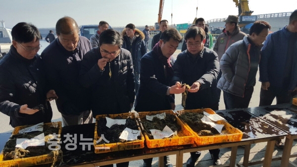 이날 김 황백화 현상 피해 지역 방문은 김태흠 국회의원도 함께 참석해 어민들을 위로했다.