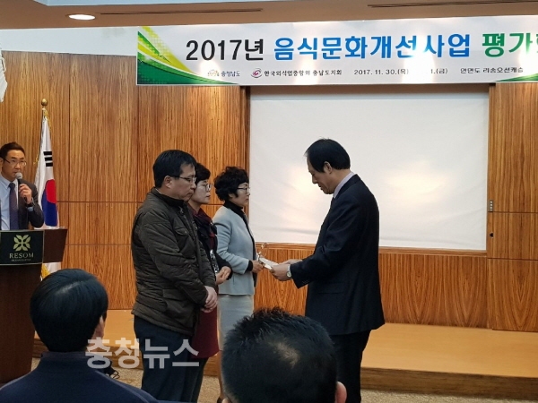 충남 아산시(시장 복기왕)는 2015년 국무총리, 2016년 식품의약품안전처 및 충청남도 우수기관 표창에 이어 12월 1일에 개최된 충청남도 음식문화개선 평가대회에서 우수기관으로 선정됐다고 밝혔다.