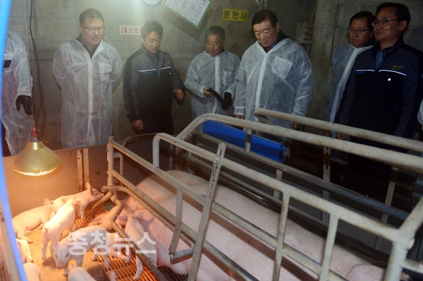 김석환 홍성군수, 동물복지형 돼지농장 살펴