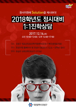 대전 유성구(구청장 허태정)가「2018학년도 정시모집 대비」대입 맞춤형 1:1 진학상담을 운영한다고 5일 밝혔다.