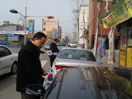 유성구 온천1동 주민자치위원(위원장 박홍준)과 통장단협의회원(회장 서승범) 40여명은 제89주년 삼일절을 맞아 나라사랑하는 마음을 되새기고자 29일 오전 유성온천 광로 일원에서 주행중인 차량에 차량용 태극기 1,000여장을 달아주는 태극기달기 홍보 캠페인을 전개했다.