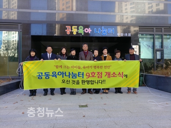 한편, 천안시에는 이번에 개소한 두정동 나눔터를 포함해 △성정동 센터내 △불당동 동일하이빌 △백석동 주공11단지 △쌍용동 느티나무도서관 △용곡동 꿈나래도서관 △신부동 천안지역사회교육협의회 △불당동 불당이안아파트 △성환읍 다문화작은도서관 등 총 9개의 공동육아나눔터가 있다.