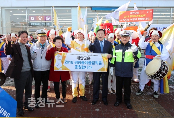 이날 태안군에서는 오전 9시부터 정오까지 안면읍(200m 구간), 태안읍(5.2km 구간), 소원면(1.4km 구간)에서 평창 동계올림픽 성화 봉송 행사가 진행됐으며, 태안군에서 선발한 5명과 조직위가 선발한 31명 등 총 36명이 주자로 나섰다.