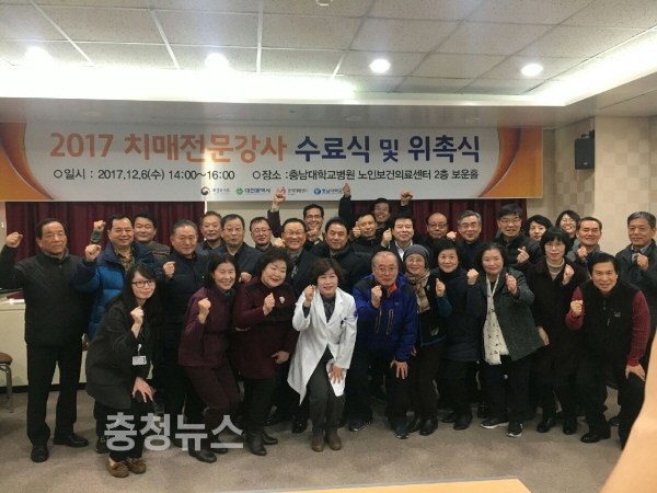 대전광역치매센터(센터장 이애영/충남대학교병원 위탁운영)는 6일 노인센터(3번 건물) 2층 보운홀에서“치매전문강사 양성 교육과정”수료식 및 위촉식을 가졌다.