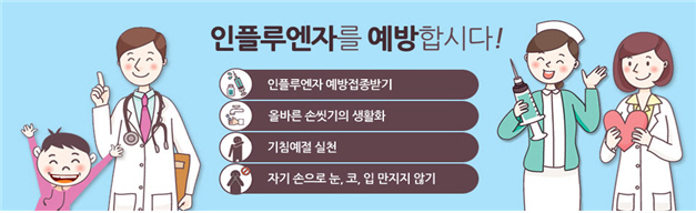 충남도는 질병관리본부의 인플루엔자 유행주의보 발령(12.1.)에 따라 도민을 대상으로 예방접종 및 손씻기, 기침예절 지키기 등 개인위생수칙 준수를 당부했다.